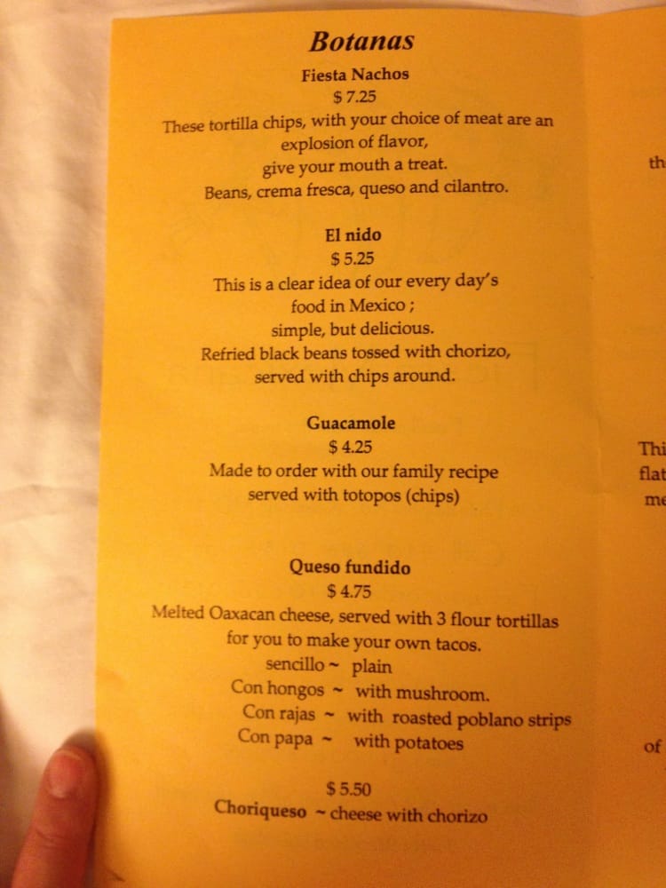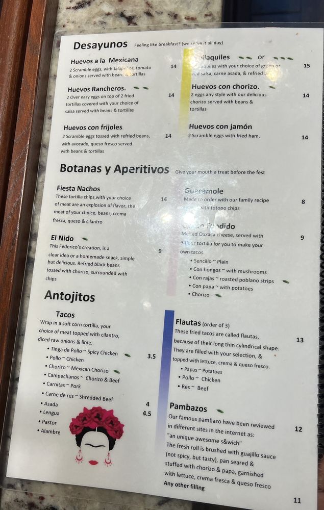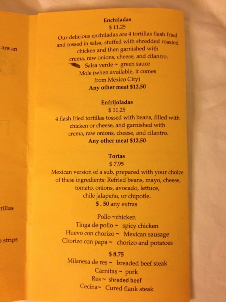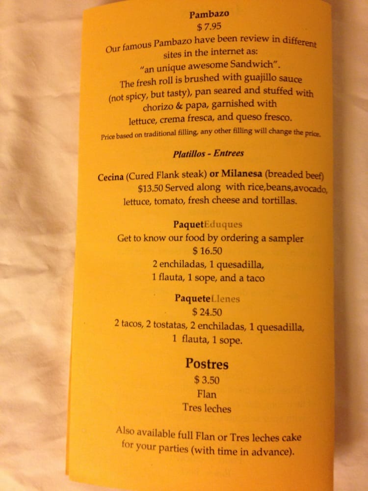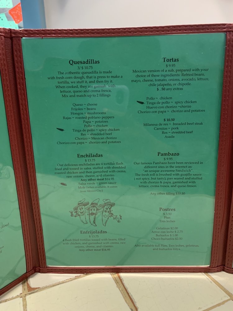 Get to know our food by ordering a sampler: enchiladas, quesadilla, flauta, sope, and a taco